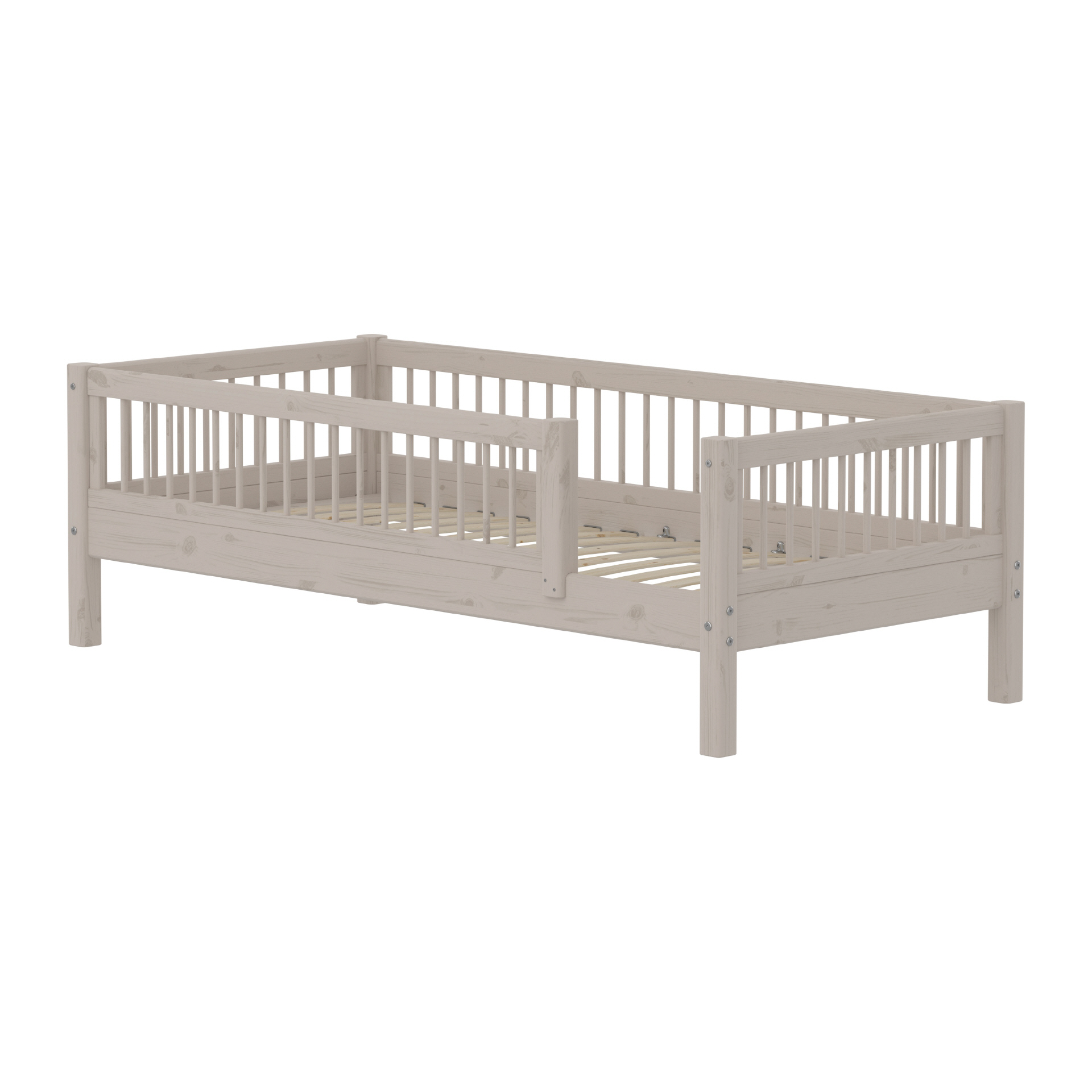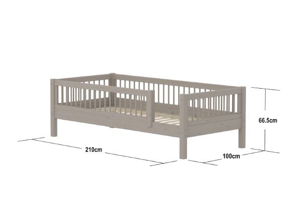 CLASSIC Bett mit Rückenlehne, Kopf- und Fußteil und Absturzsicherung mit Streben. Es ist ideal für Kleinkinder, die gerade dem Babybett entwachsen sind. Das Bettdesign ist klassisch skandinavisch und in drei Farben erhältlich. Fügen Sie eine Unterbett-Schublade hinzu, die Platz für Kinderspielzeug und Bettwäsche bietet. Die CLASSIC Kollektion wächst mit dem Kind. Wenn Sie kurze Pfosten an das Einzelbett montieren, wird daraus ein mittelhohes Bett. Wenn Sie lange Pfosten an das Bett montieren, wird daraus ein Hochbett. Das Bett besteht aus massivem Kiefernholz.