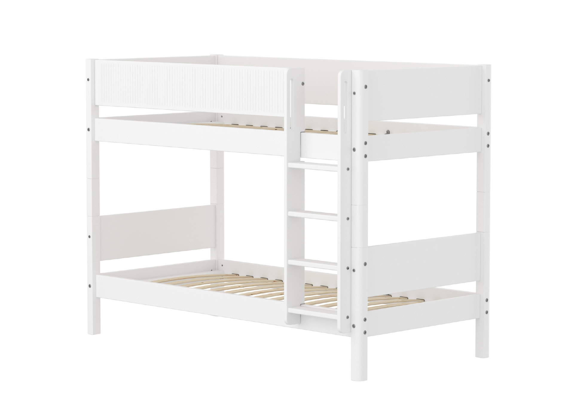 Das WHITE Etagenbett mit gerader Leiter ist die ideale, platzsparende Lösung für kleinere Wohnungen. Die Leiter hat rutschfeste Stufen und integrierte Griffe und kann an beiden Bettenden aufgestellt werden.