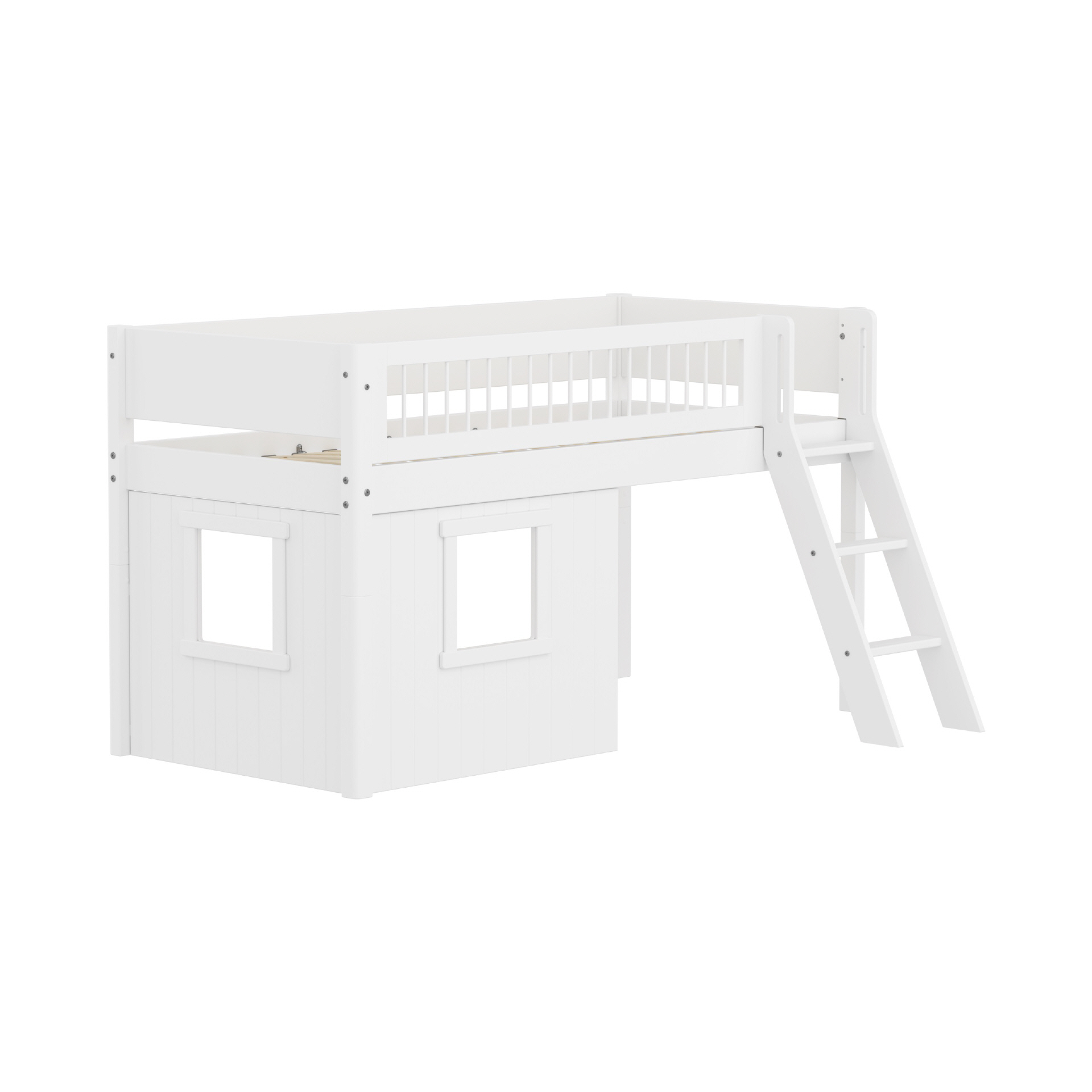 Halbhohes Hausbett mit Sprossen-Schrägleiter