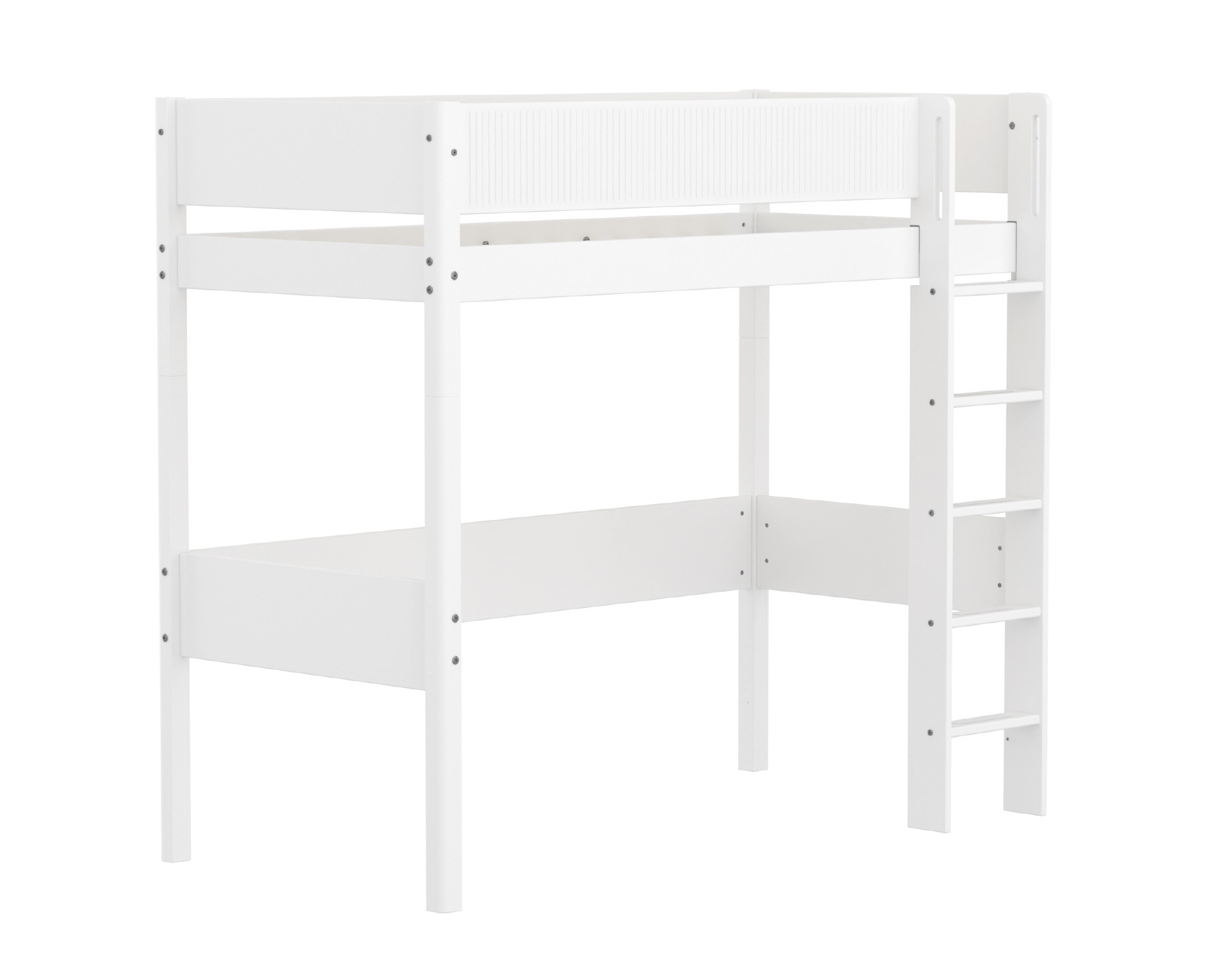 Das WHITE Hochbett ist ideal, wenn das Kind unter dem Bett einen Raum oder Aufbewahrungsfläche benötigt. Unter dem Bett kann man es sich so richtig gemütlich machen. Das Hochbett ist modular aufgebaut und kann durch Auswechseln der Pfosten und der Leiter in ein Einzelbett oder ein mittelhohes Bett umgewandelt werden. Das Bett hat eine gerade Leiter mit rutschfesten Stufen und integrierten Griffen. Die Leiter kann an beiden Bettenden aufgestellt werden.