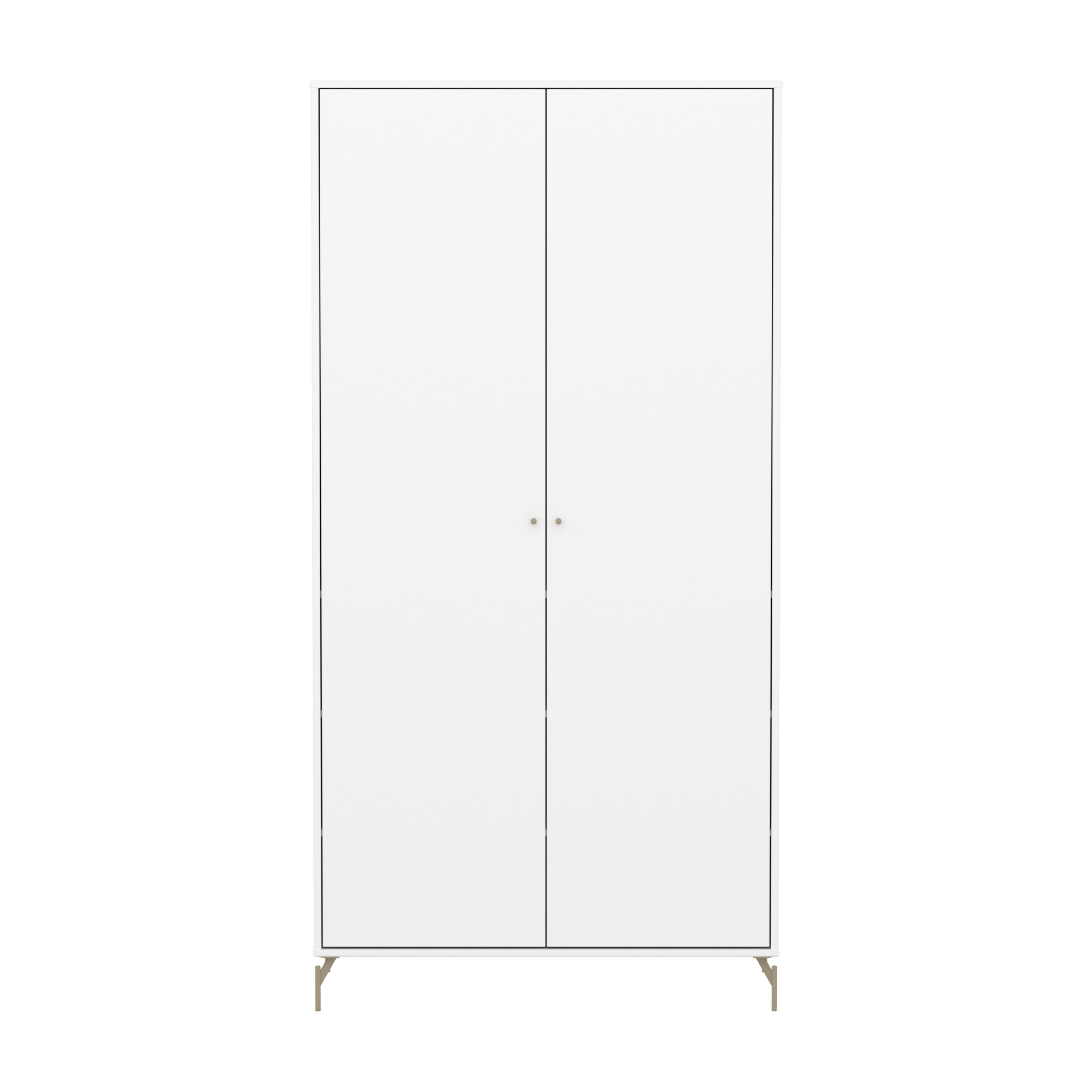 Der Kleiderschrank besteht aus langlebigem, FSC®-zertifiziertem MDF, und der Lack ist frei von schädlichen Substanzen, was Robustheit und Widerstandsfähigkeit gegen Abnutzung garantiert. Wählen Sie zwischen Oat-farbenen Metallfüßen oder grauen Kunststofffüßen – beides ist im Lieferumfang enthalten.