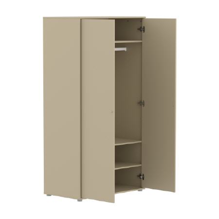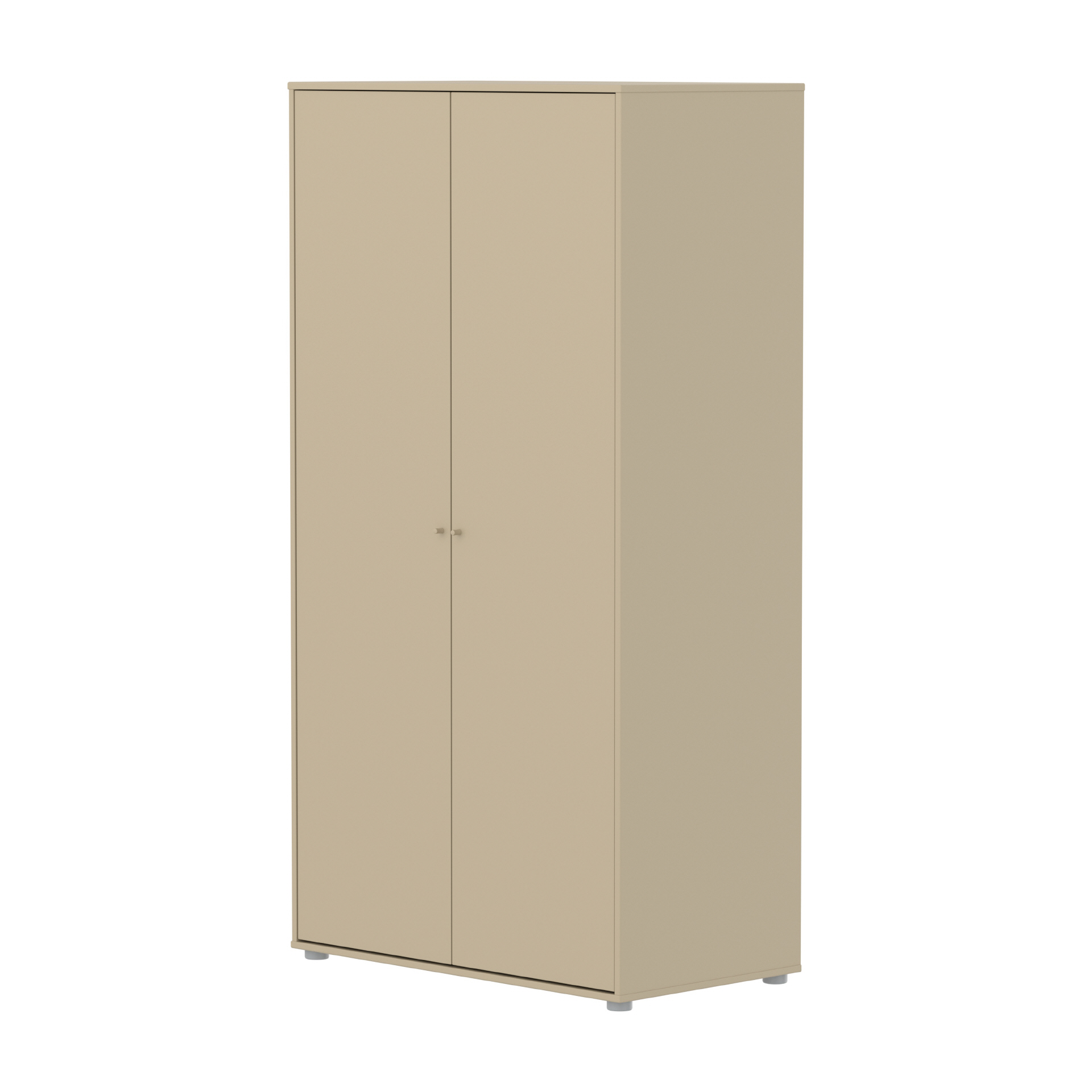 Der FLEXA SAGA Kleiderschrank verfügt über 2 Türen, 2 verstellbare und 1 feste Ablage sowie eine praktische Kleiderstange, die in zwei Positionen montiert werden kann. Die Soft-Close Türen schützen kleine Finger, während die runden Knöpfe aus Oat-farbenen Metall Eleganz verleihen. Bitte beachten Sie, dass im Lieferumfang nur graue Kunststofffüße enthalten sind.