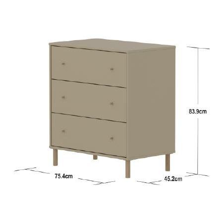 Die FLEXA SAGA Kommode verfügt über 3 Schubladen mit Soft-Close Funktion, um kleine Finger zu schützen. Die Griffe in Eiche verleihen der Kommode ein schlichtes und elegantes Design. Sie haben die Wahl zwischen Füßen in Eiche oder Kunststofffüßen, die beide im Lieferumfang enthalten sind. Bei Verwendung der Kunststofffüße kann die Kommode unter unseren halbhohen Betten aufgestellt werden.