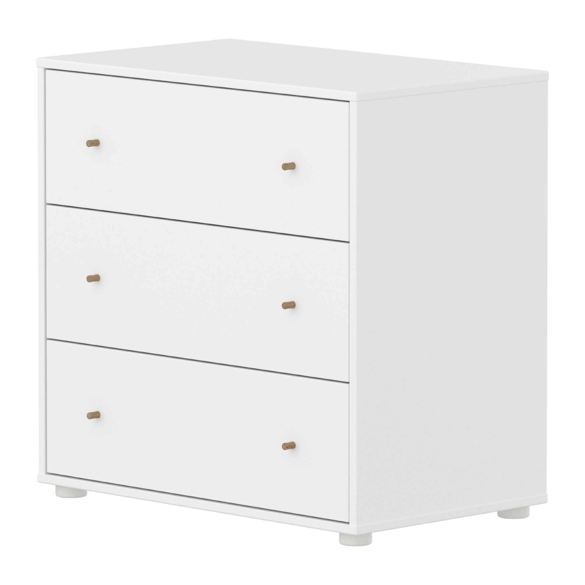 Die FLEXA SAGA Kommode verfügt über 3 Schubladen mit Soft-Close Funktion, um kleine Finger zu schützen. Die Griffe in Eiche verleihen der Kommode ein schlichtes und elegantes Design. Bei Verwendung der Kunststofffüße kann die Kommode unter unseren halbhohen Betten aufgestellt werden. Bitte beachten Sie, dass nur Kunststofffüße im Lieferumfang enthalten sind.