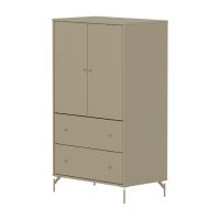 Der FLEXA SAGA Schrank verfügt über zwei Türen zwei Schubladen und einen verstellbaren Einlegeboden. Die Türen mit Soft Close Funktion und die Schubladen schützen kleine Finger und bieten eine elegante und leise Schließfunktion. Die runden Metallgriffe in der Farbe Oat verleihen dem Schrank ein schlichtes und elegantes Design.
