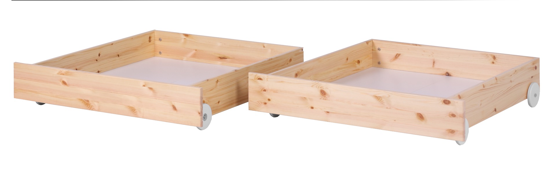 Die geräumigen Schubladen eignen sich hervorragend zur Aufbewahrung von Bettwäsche oder Spielzeug. Jede Schublade bietet ein Fassungsvermögen von 88,5 Litern. Dank der praktischen Rollen können die Schubladen kinderleicht unter dem Bett hervorgezogen werden.