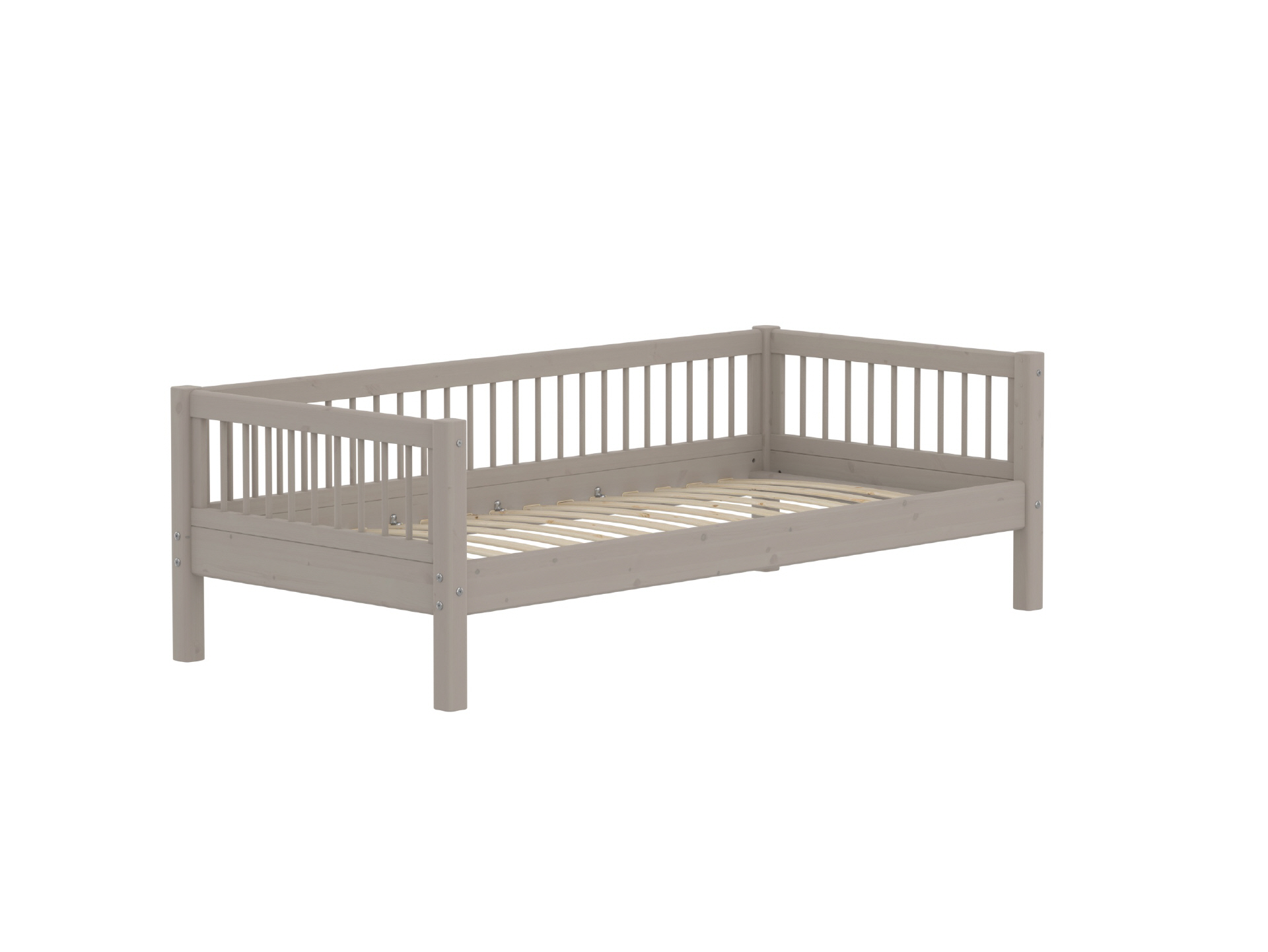 CLASSIC Bett mit Rückenlehne, Kopf- und Fußteil. Es ist ideal für Kleinkinder, die gerade dem Babybett entwachsen sind. Das Bettdesign ist klassisch skandinavisch und in drei Farben erhältlich. Fügen Sie eine Unterbett-Schublade hinzu, die Platz für Kinderspielzeug und Bettwäsche bietet.