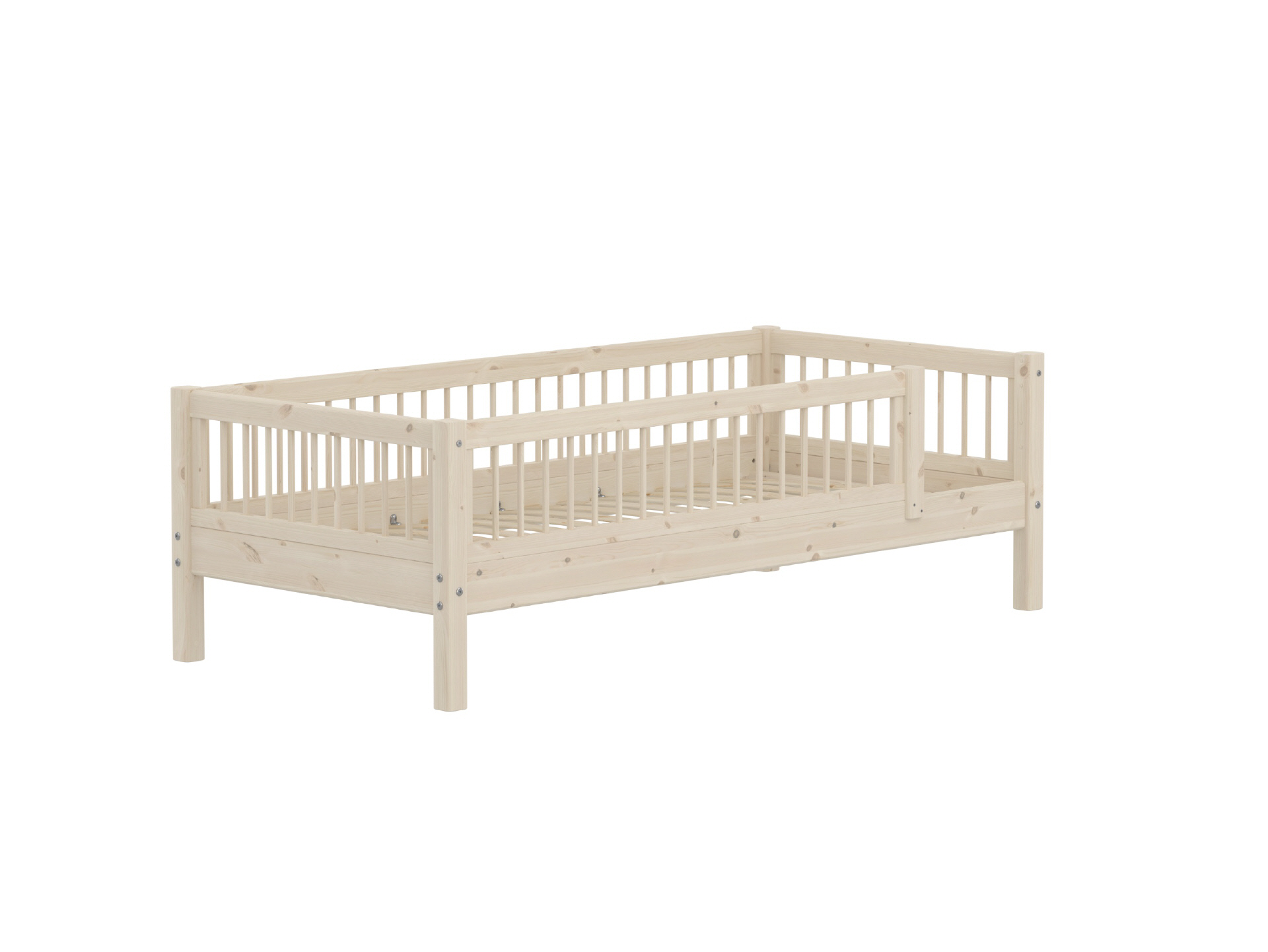 CLASSIC Bett mit Rückenlehne, Kopf- und Fußteil und Absturzsicherung mit Streben. Es ist ideal für Kleinkinder, die gerade dem Babybett entwachsen sind. Das Bettdesign ist klassisch skandinavisch und in drei Farben erhältlich. Fügen Sie eine Unterbett-Schublade hinzu, die Platz für Kinderspielzeug und Bettwäsche bietet. Die CLASSIC Kollektion wächst mit dem Kind. Wenn Sie kurze Pfosten an das Einzelbett montieren, wird daraus ein mittelhohes Bett. Wenn Sie lange Pfosten an das Bett montieren, wird daraus ein Hochbett. Das Bett besteht aus massivem Kiefernholz.