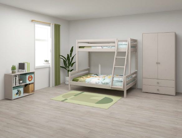 Etagenbett Classic Kombination (oben Einzel- 90 cm und unten Doppelbett 140 cm ) Neue Schrägleiter mit integrierten Griffen.H:184 L:210 B:161 cm