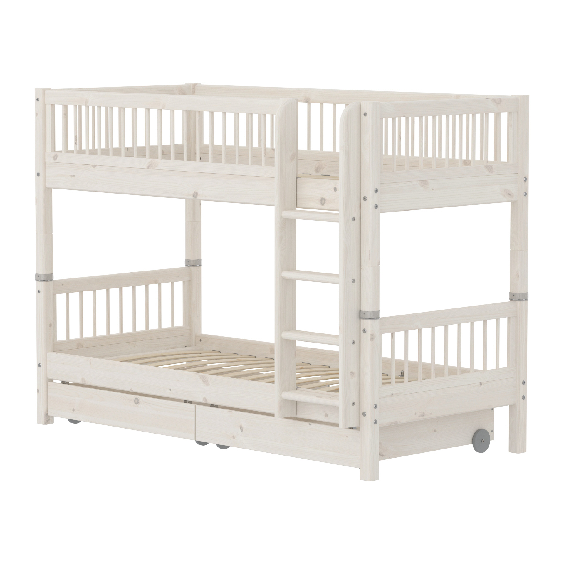 Etagenbett-Classic-Kreuzleisten-Schubladen-Weiss