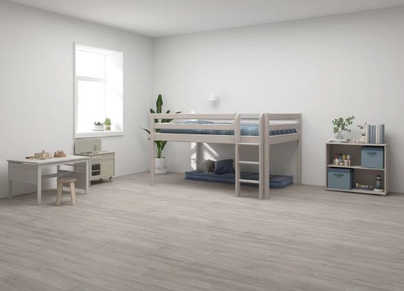 Breites (140cm) halbhohes Classic Bett. Mit senkrechter Leiter. H:120 L:210 B:160 cm