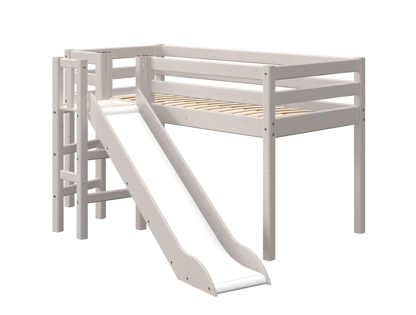 Halbhohes Classic Bett mit Plattform und Rutsche. H:120 L:242 B:174 cm