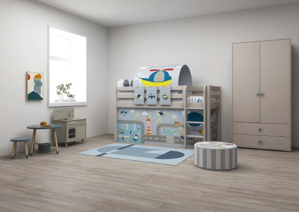 Halbhohes Bett-senkr.Leiter-Classic-Grau lasiert