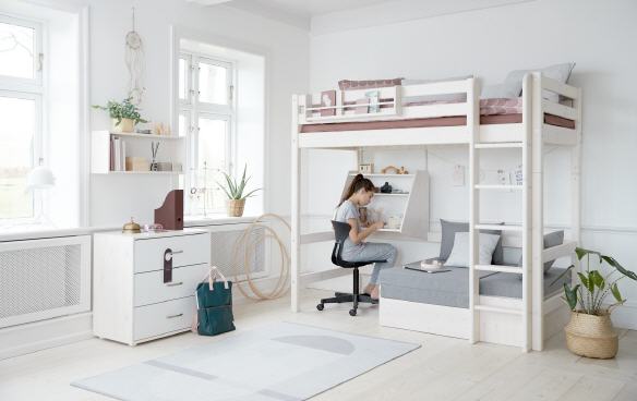 Hochbett-Classic-Schrägl.-Sofa-Schreibtisch-Weiss