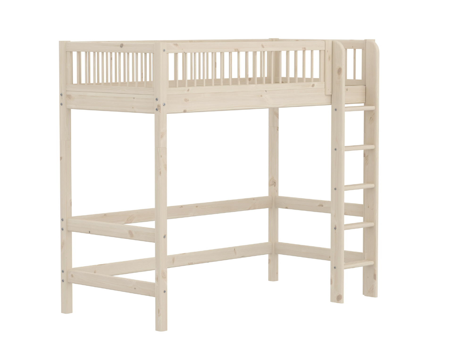 Classic Hochbett mit gerade Leiter. Die Leiter hat rutschfeste Stufen und kann an beiden Bettenden aufgestellt werden. Der Raum unter dem Bett eignet sich ideal als Lernbereich oder Stauraum. Die CLASSIC Kollektion wächst mit dem Kind. Wenn Sie kurze Pfosten an das Hochbett montieren, können Sie es zu einem Einzelbett oder einem mittelhohen Bett umbauen. Das Bett besteht aus massivem Kiefernholz.