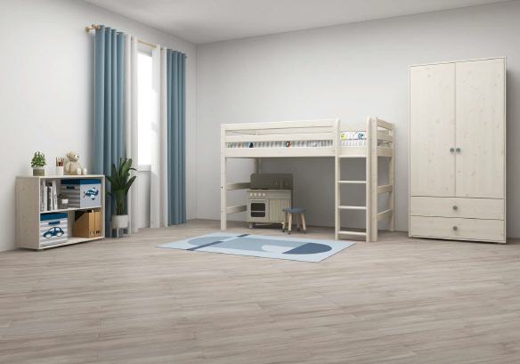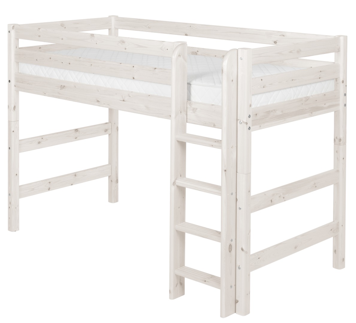 Mittelhohes Bett-Classic-m.senkr.Leiter-Weiss
