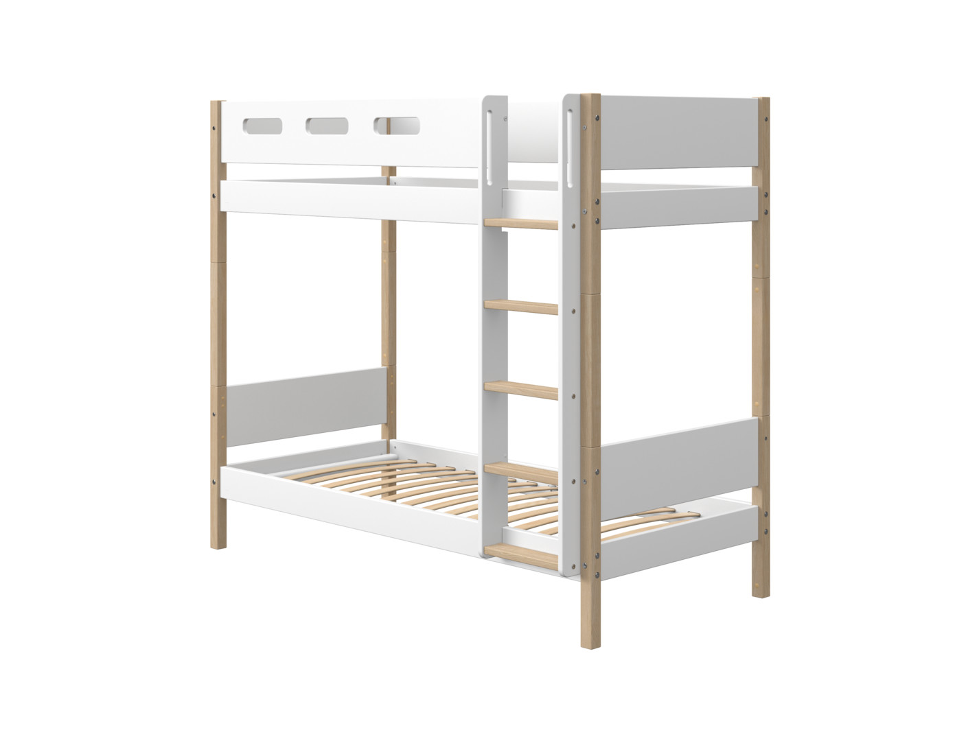 Etagenbett NOR mit senkrechter Leiter. Aus massiver Eiche und MDF.H:183,5 L:208 B:108,3 cm; für Matratze 200 cm