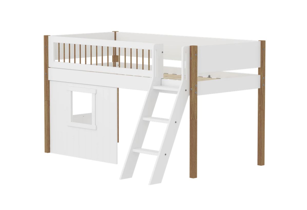 Mit Hausfronten bekommt Ihr Kind dieses magische Baumhaus-Feeling. Hier hat Ihr Kind sein ganz eigenes Zimmer im Zimmer, in dem es wertvolle Zeit allein genießen kann – wie in einem privaten Gartenbaumhaus. Und wenn es Zeit zum Spielen ist, kann Ihr Kind Freunde und Geschwister auf einen Besuch einladen. Stellen Sie sich nur vor, wie viel Spaß sie beim Haus-, Kaufladen- oder Versteckspiel haben werden. Mit einem mittelhohen Nor Bett mit Hausfronten sind die Möglichkeiten zum Spielen und Lernen unbegrenzt.