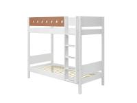 White MDF Etagenbett extrahoch mit farbiger Absturzsicherung und Pfosten aus Birke, weiss/weiss/weiss.