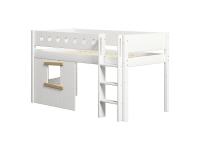 Das mittelhohe White-Bett mit Baumhaus-Bettenfronten ist darauf ausgelegt, den Schlaf-, Spiel- und Entwicklungsbedarf Ihres Kindes zu unterstützen – und das alles gleichzeitig. Eine Absturzsicherung und eine gerade Leiter mit rutschfesten Stufen und integrierten Griffen sorgen dafür, dass Ihr Kind immer sicher ist und sich komfortabel bewegen kann — sowohl beim Spielen als auch beim Schlafen. Sie können die Leiter an beiden Enden des Bettes anbringen, und Sie können das Bett umbauen, wenn Ihr Kind größer wird.