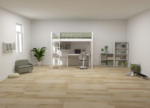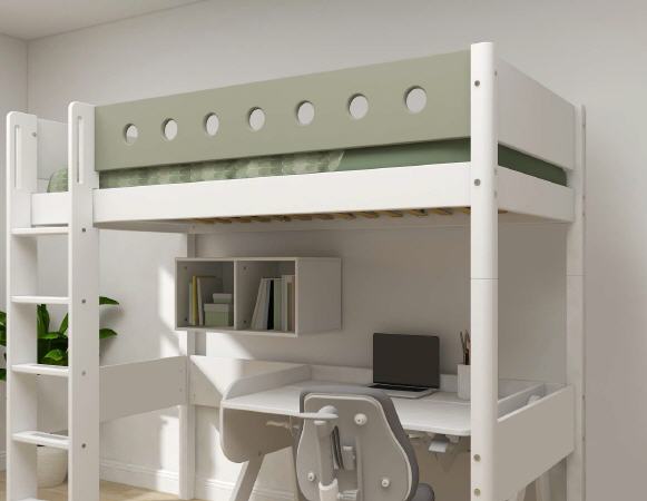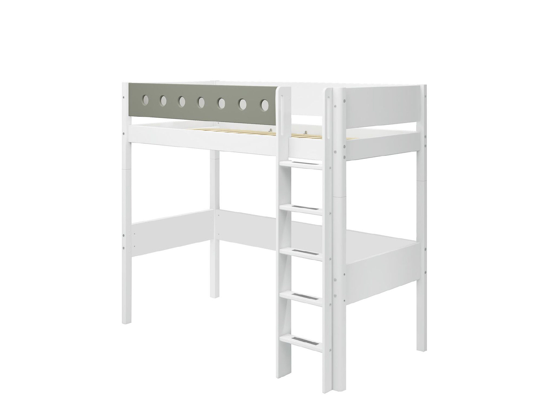 Hochbett-White- Senkr.Leiter-weiß/Naturgrün