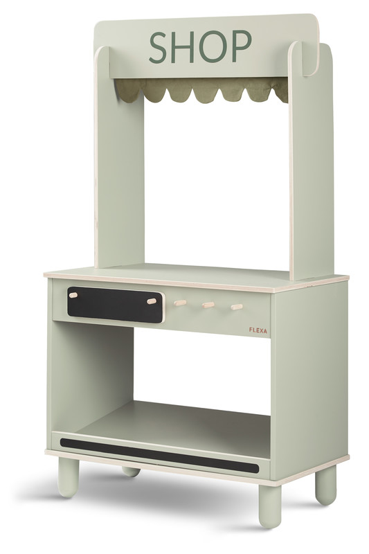 Der Kaufladen. Aus massiver Birke, Schichtholz und MDF.H: 113 cm; B: 60 cm; T: 34,5 cm