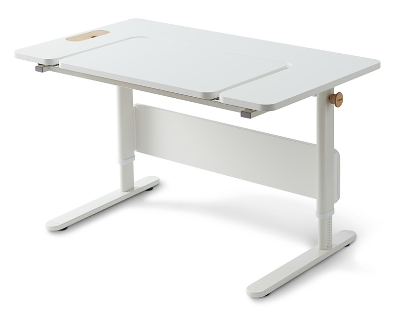 Große Tischplatte mit Neigungsfunktion, MDF mit Laminatoberfläche. Gasdämpfer, Kunststoffeinsatz mit Deckel.