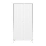 Der Kleiderschrank besteht aus langlebigem, FSC®-zertifiziertem MDF, und der Lack ist frei von schädlichen Substanzen, was Robustheit und Widerstandsfähigkeit garantiert. Wählen Sie zwischen Oat-farbenen Metallfüßen oder grauen Kunststofffüßen – beides ist im Lieferumfang enthalten.