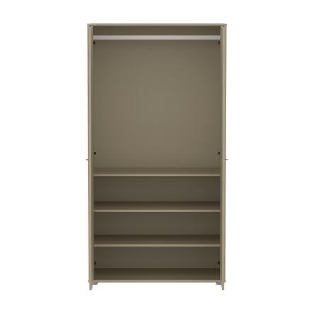 Der FLEXA SAGA Kleiderschrank verfügt über 2 Türen, 2 verstellbare und 1 feste Ablage sowie eine praktische Kleiderstange, die in zwei Positionen montiert werden kann. Die Soft-Close Türen schützen kleine Finger, während die runden Knöpfe aus Oat-farbenen Metall und die gerillten Fronten einen Hauch von Eleganz verleihen.