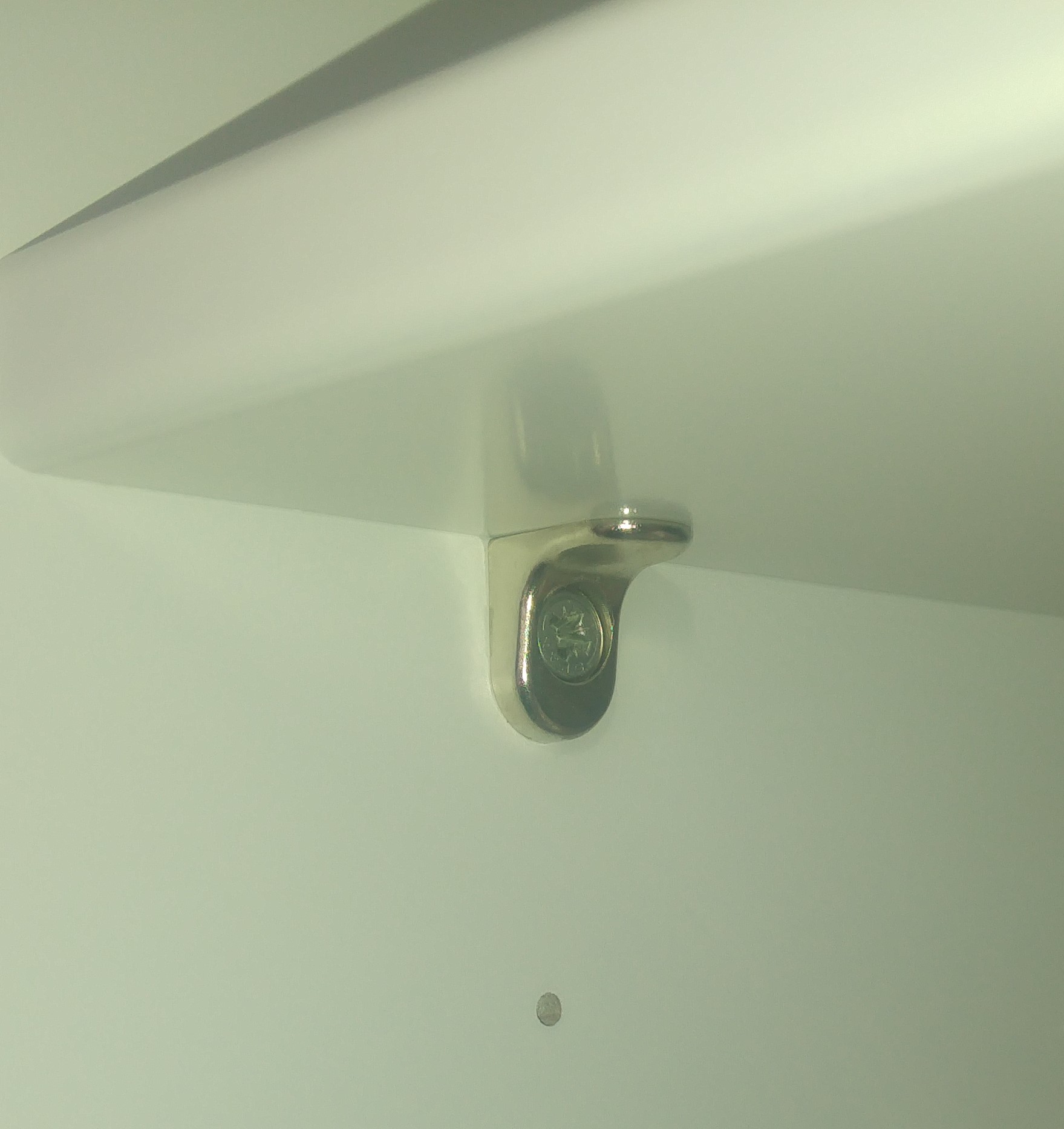 Bodenträger silbern mit Schraube. Für alle Regalböden von Flexa mit Lochbohrung. Die Böden werden auf