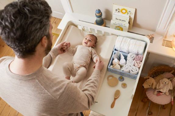 Dieser Wickeltisch schafft Raum für all die kostbaren Momente, in denen Sie Ihr Baby beim Wickeln knuddeln.