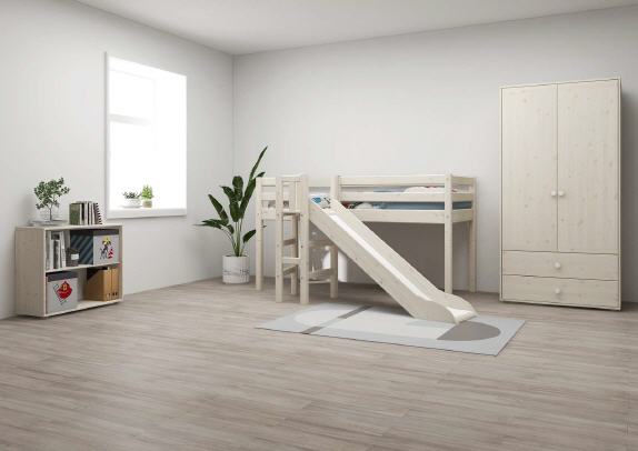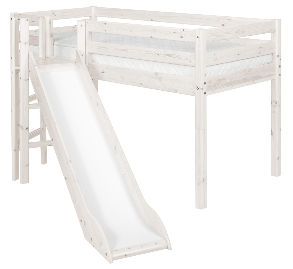 Halbhohes Classic Bett mit Plattform und Rutsche. H:120 L:242 B:174 cm