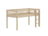 Halbhohes CLASSIC Bett mit gerader Leiter und Absturzsicherung für Kinder. Die Leiter hat rutschfeste Stufen und kann an beiden Bettenden aufgestellt werden. Der Raum unter dem halbhohen Bett eignet sich ideal als Stauraum. Mit den FLEXA Spielvorhängen können Sie unter dem Bett ein privates kleines Reich für Ihr Kind schaffen. Die Höhle lässt sich auf das Bett stellen. Mit einem anderen Absturzsicherung und einer Rutsche am mittelhohen Bett wird das Kinderzimmer zum Spielplatz. Die CLASSIC Kollektion wächst mit dem Kind. Wenn Sie kurze Pfosten an das halbhohe Bett montieren, wird daraus ein Einzelbett. Wenn Sie lange Pfosten an das Bett montieren, wird daraus ein Hochbett. Das Bett besteht aus massivem Kiefernholz.