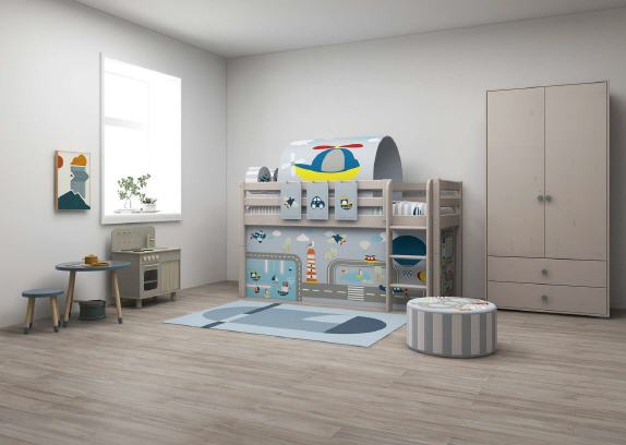 Halbhohes Classic Bett mit senkrechter Leiter. H:120 L:210 B:110 cm