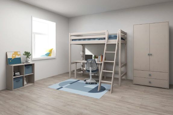 Hochbett Classic mit neuer Schrägleiter mit integrierten Griffen. H:185 L:210 B:179 cm