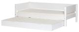 White MDF Einzelbett mit Ausziehbett und Pfosten aus Birke, weiss/weiss.