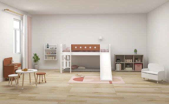 Halbho. Bett-White- m.Leiter+Rutsche-weiß/Rotviole
