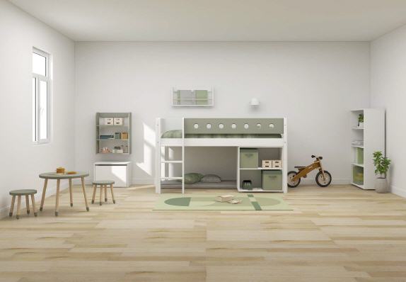 Halbhohes Bett-White- m. senkr.Leit.weiß/Naturgrün