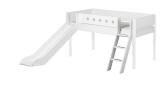 Halbhohes Bett-White-+Leiter+Rutsche(weiß/weiß)