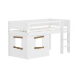 Das halbhohe WHITE Bett mit Bettenfronten ist darauf ausgelegt, den Schlaf-, Spiel- und Entwicklungsbedarf Ihres Kindes zu unterstützen – und das alles gleichzeitig. Eine Absturzsicherung und eine Leiter mit rutschfesten Stufen und integrierten Griffen sorgen dafür, dass Ihr Kind immer sicher ist und sich komfortabel bewegen kann — sowohl beim Spielen als auch beim Schlafen. Sie können die Leiter an beiden Enden des Bettes anbringen, und Sie können das Bett umbauen, wenn Ihr Kind größer wird.