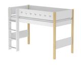 Mittelhohes Bett-White-m.senkr.Leiter(Birke/weiß)